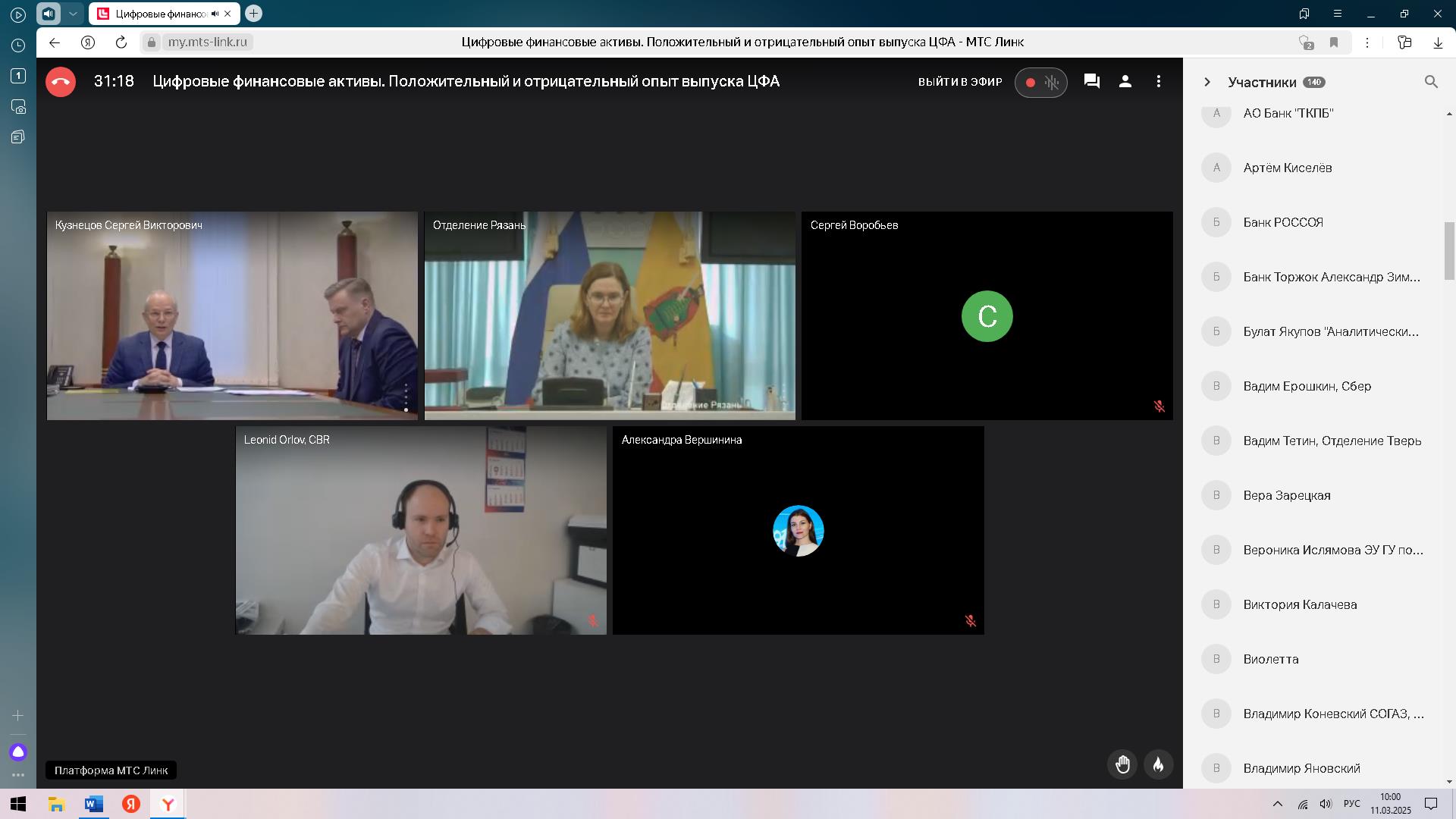 Положительный и отрицательный опыт выпуска ЦФА». Всего более 140 участников со всей России. Принял активное участие доцент кафедры Экономика и финансы Липецкого филиала Финуниверситета Евсин М.Ю.