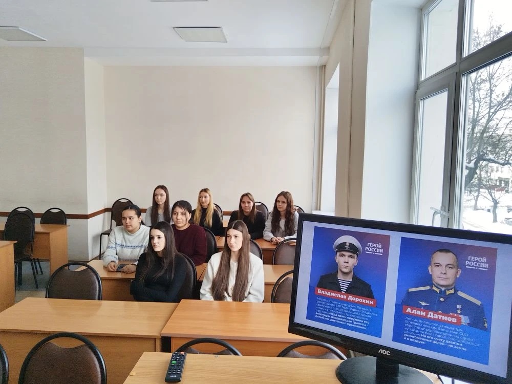 20 февраля куратором Голиковой О.А. был проведён урок мужества со студентами группы ЛПЦ25-ОБ-ФК1. Урок был посвящён теме патриотзма и ценностями, в которых он проявляется. Особое внимание было удалено уроженцам Липецкой области, принимавших участие в специальной военной операции и за подвиги удостоенных высшего звания "Герой России".