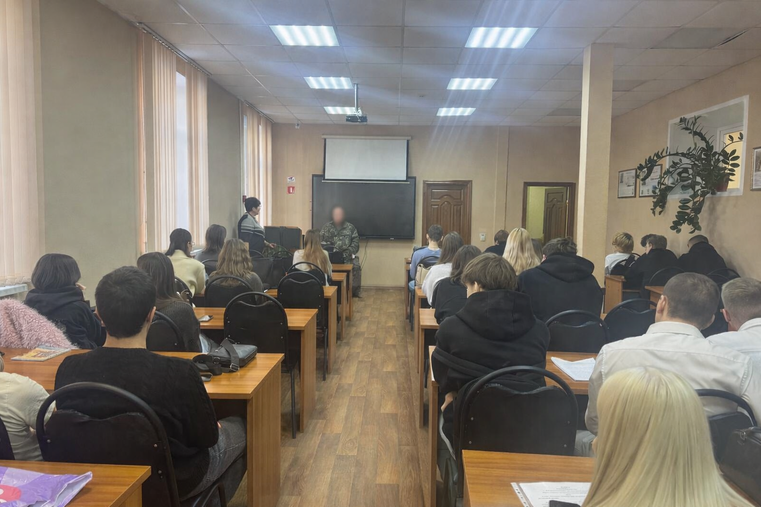 17 февраля 2026 года в Липецком филиале Финуниверситета к.э.н, доцентом кафедры «Менеджмент и общегуманитарные дисциплины» Некрасовой Е.А. проводился «Урок мужества», на котором присутствовали студенты 2 курса бакалавриата и среднего профессионального образования.
